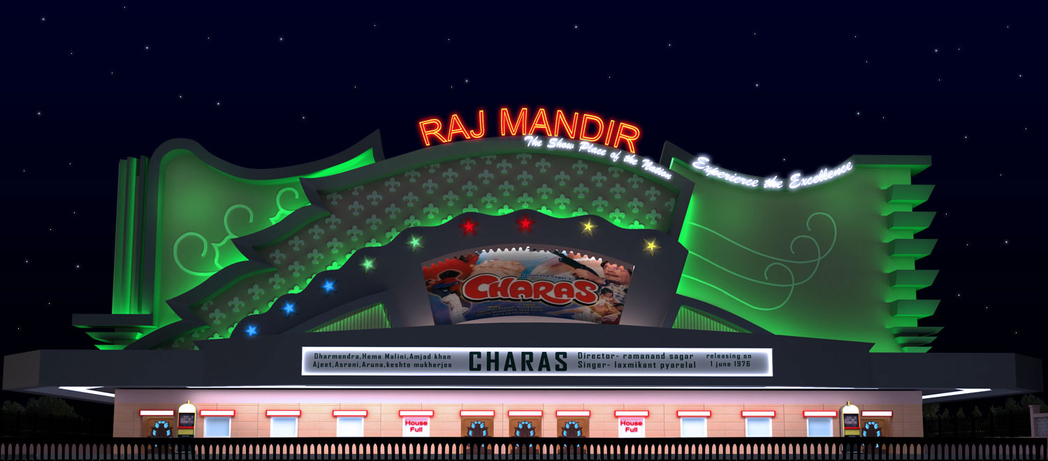 Raj Mandir Cinema is a famous movie theatre in Jaipur, the meringue-shaped auditorium opened in 1976, and over the years has seen many movie premieres of Bollywood films and has become a popular symbol of Jaipur.